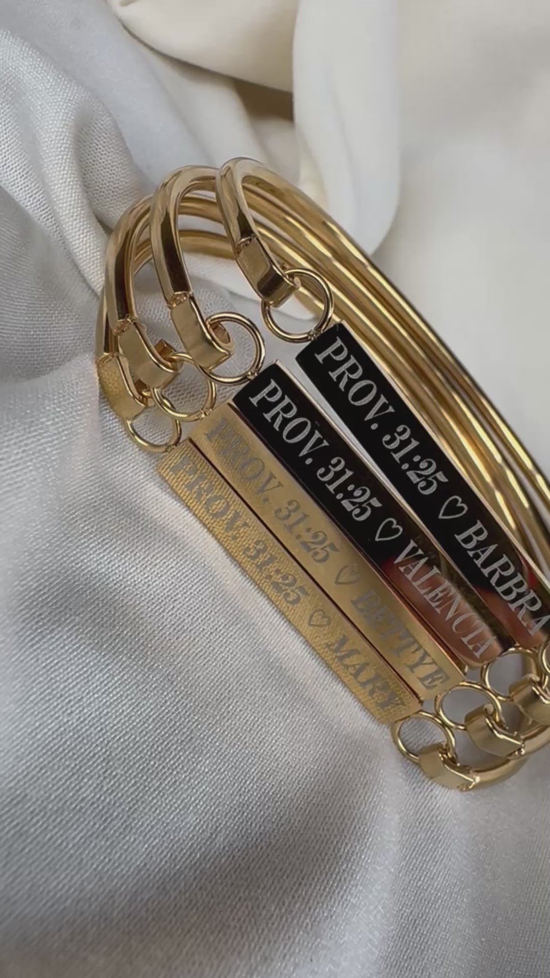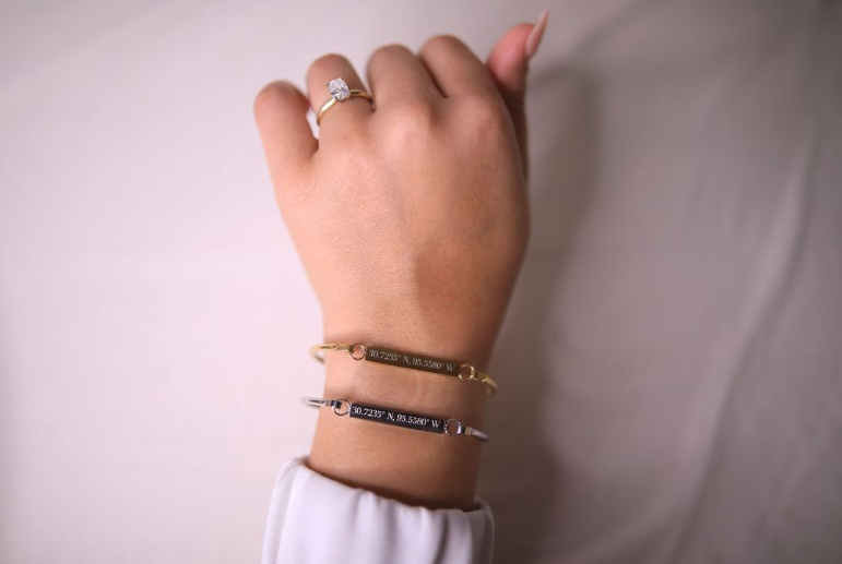 - Design: Modern bangle with a sleek engravable bar centerpiece