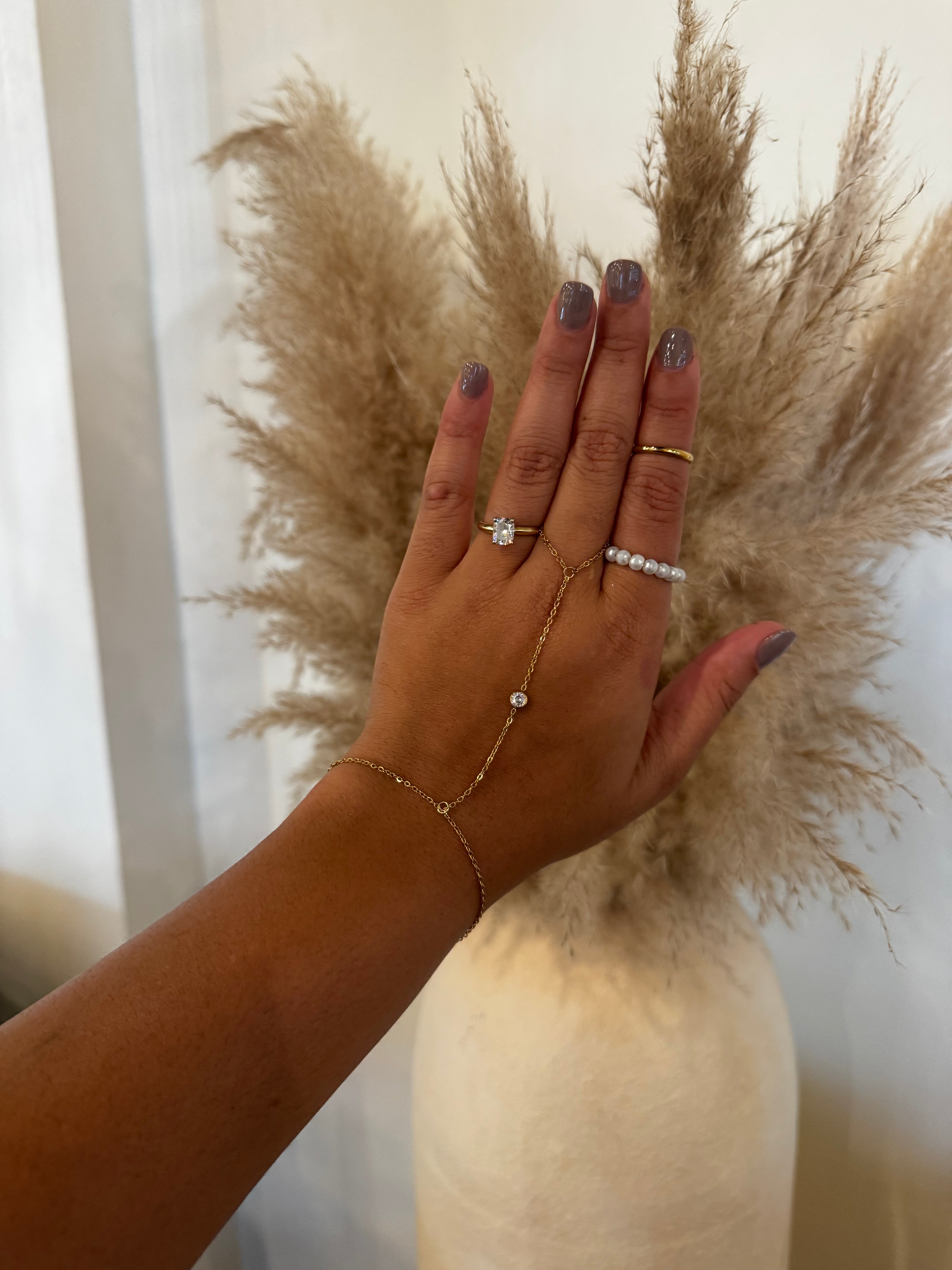 The Single Diamond Hand Chain is all about that one perfect sparkle. Featuring a single dazzling diamond detail, it’s an elegant way to add shine and sophistication to any outfit — from everyday wear to special occasions.